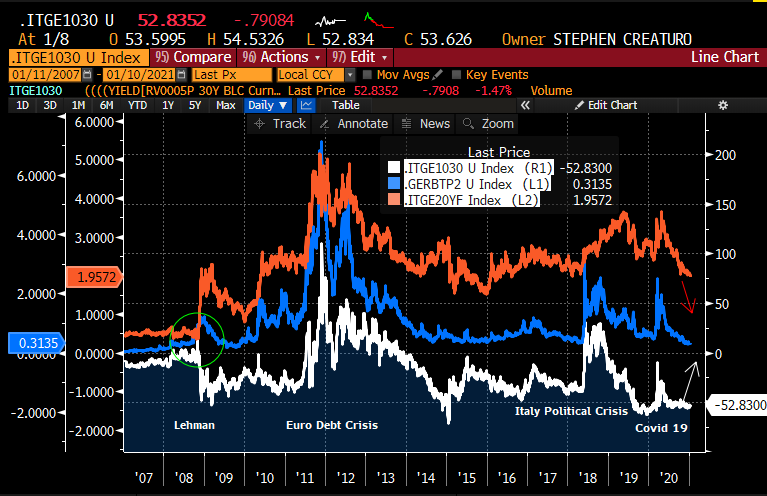 But while the trade is meant to be contingent – I look at it as – any further blow-up in BTPs and 10/30s reverts back to credit sensitivity and performs