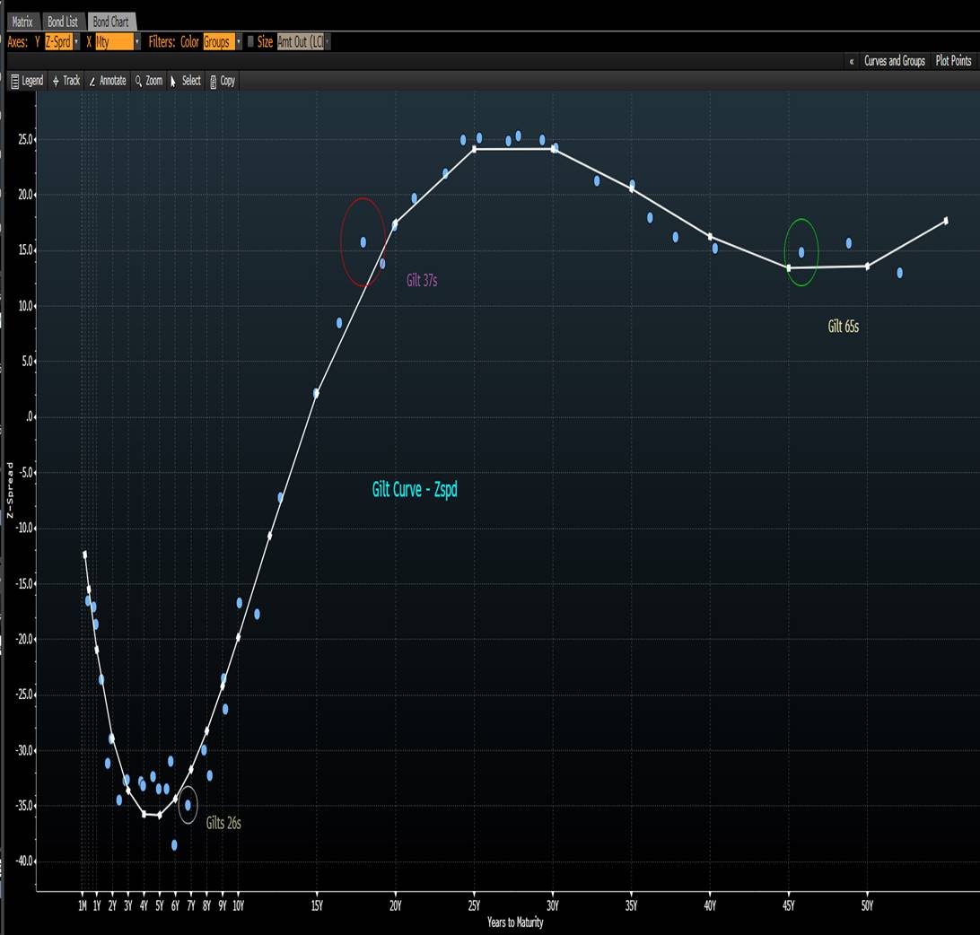 - 37s - Carry + Roll down best part of the Gilt curve.