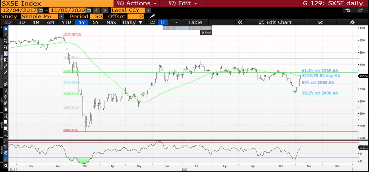 STOCKS : EQUITIES ALL HAVE BOUNCED, EUROPE IS STRUGGLING WITH ITS 50 DAY MOVING AVERAGES WHILST THE US IS ABOUT TO TEST PREVIOUS HIGHS.