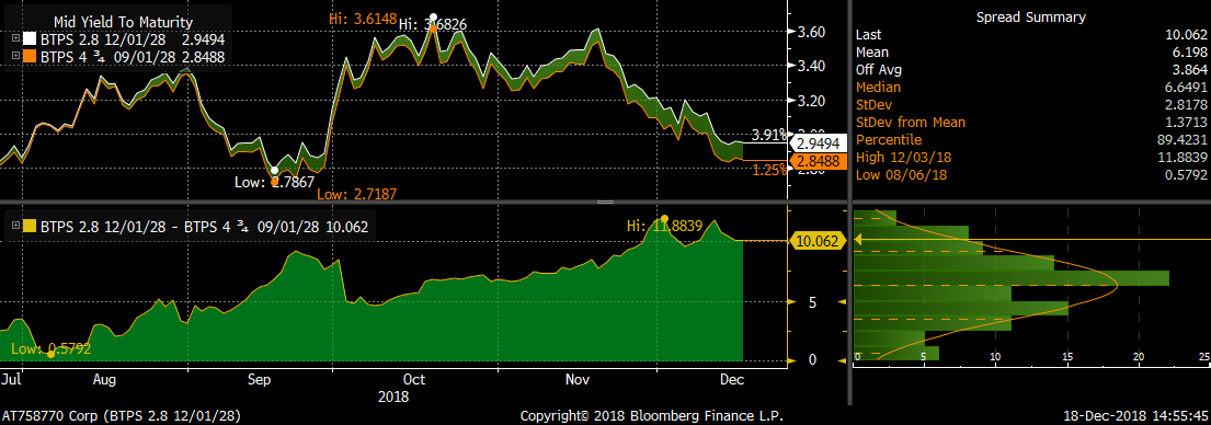 Sell Btps 4.75 Sep28, Buy Btps Dec28 close to supply