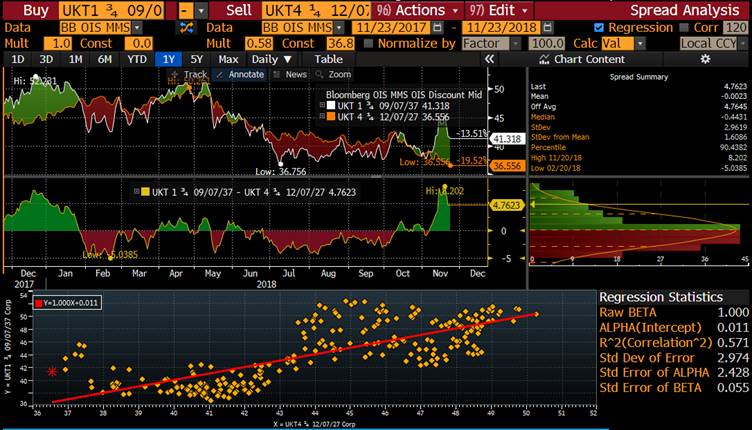 Regression of Ukt 37s OIS spread vs Ukt 27s OIS spread -